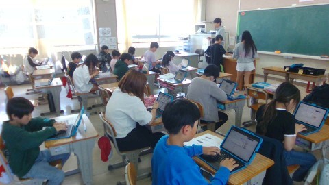 2組。タブレットのタイピング練習をしました。クリアしたらどんどん進んでいきます。みんな速い!