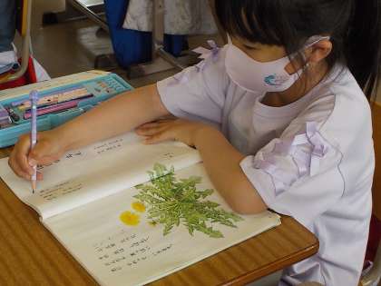 黒板に貼ってあるたんぽぽの挿絵を正しい順序に並べていきます。