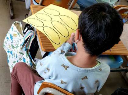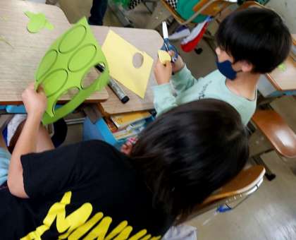 いいところ見つけの「いいとこ鳥」の羽を作成中!