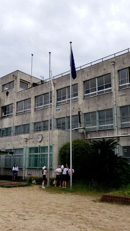 国旗、校旗の掲揚。