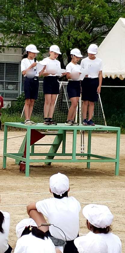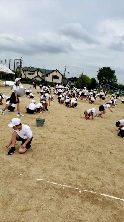 どの縦割り班チームが、たくさん 運動場の石を拾えるかな?