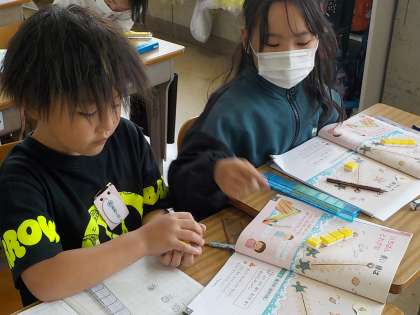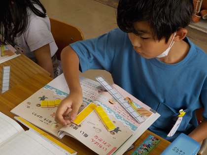 ブロックを使って長さ比べをしていました。3本の直線で一番長いのはどれかな?