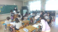 クレパスや絵具を使って、大きな画用紙に絵を描いていました。