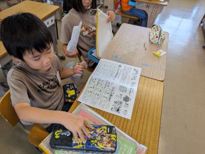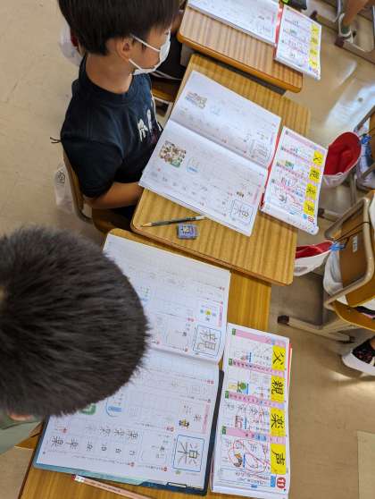 1組はほけんだよりを確認し、2組は進出漢字を確認しました。
