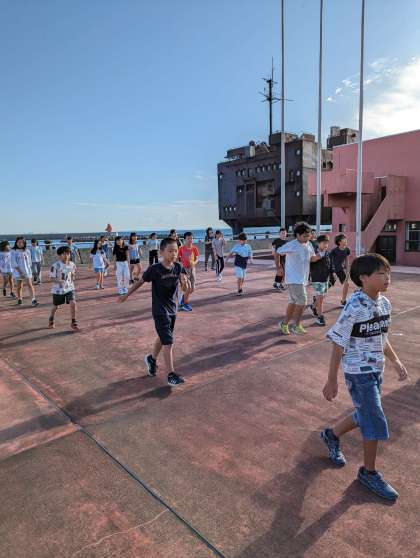 朝の活動といえばやっぱり新堺っ子体操ですね。