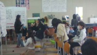 ダブルダッチをしていました。入るタイミングが難しいですが、楽しそうに練習していました。