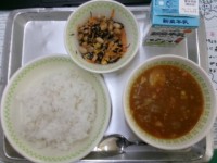2学期最後であり,今年最後の給食です。子どもの好きなカレーライスでした。1年間,...