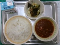2学期最後であり,今年最後の給食です。子どもの好きなカレーライスでした。1年間,...