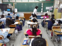 運動場の体育では、「キックサークル的あてゲーム」に取り組みます。上手にボールをけることができているかな。