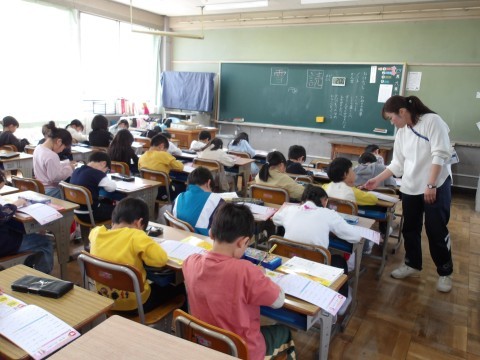早速、漢字の練習をしています。姿勢よく、しっかりとした字が書けています。
