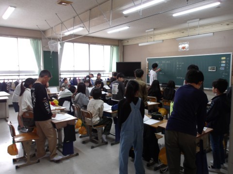 社会では、国民の休日について、知っているだけノートに書きだします。書き出した自分の知っている休日がすべて発表されると座ります。一番たくさん書き出せたのは、誰かな?