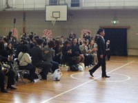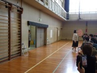 家庭科では、屋上に行って、気温をはかります。室温との違いはどのくらいだったかな?快適な温度とはどのくらいなのかを考えます。授業の最後に、家庭科の先生と屋上で記念写真を撮りました。