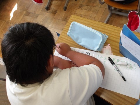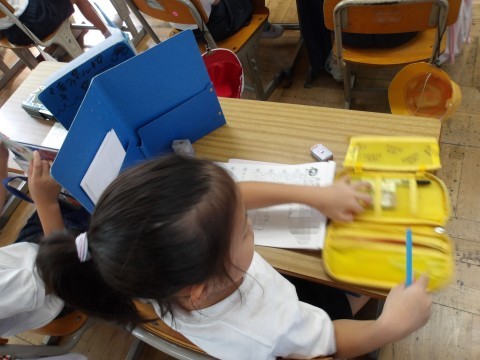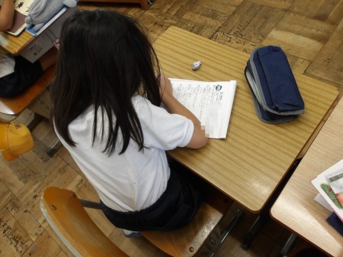 漢字のテストが行われています。