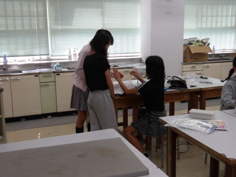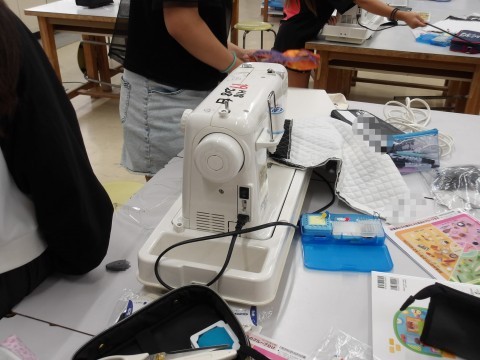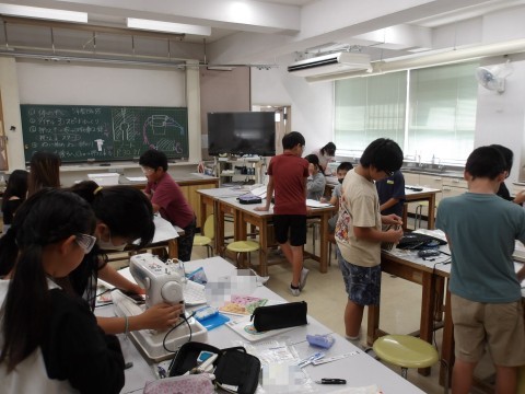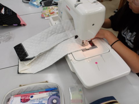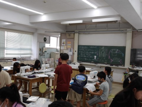 家庭科では,ナップザックの制作をしています。ミシンの扱いにも慣れてきました。