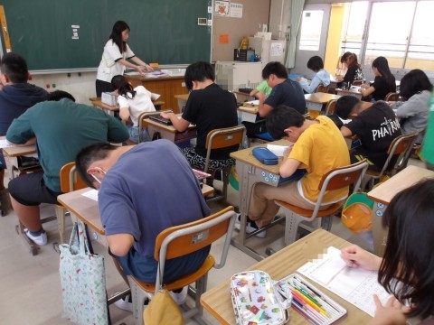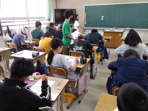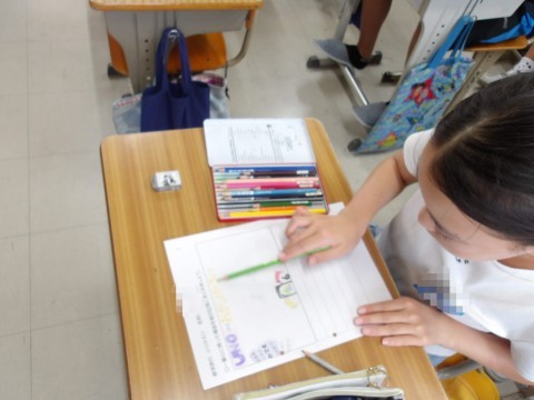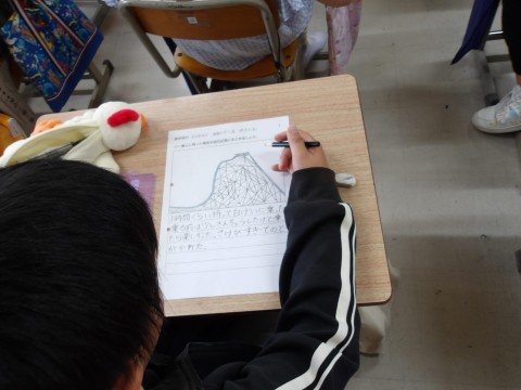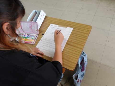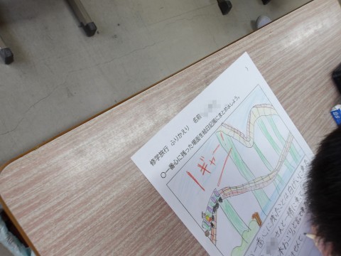 こちらのクラスでは,修学旅行の一番心に残った場面を絵日記にしています。