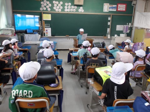1年生の終わりの会をサポートしてきました。日直さんがスムーズに進行を進めます。さっと帰る用意をしてテキパキと動き,感心しました。なので,はなまるをプレゼントしました。日直さんは,カメさんのエサも忘れずにあげています。気をつけて帰りましょう。