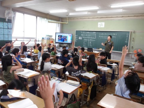 理科「ヒトの体のつくりと運動」では,自分の体の柔らかいところ,硬いところを見つけて,人の体が曲がることで様々な動きができることを学んでいます。