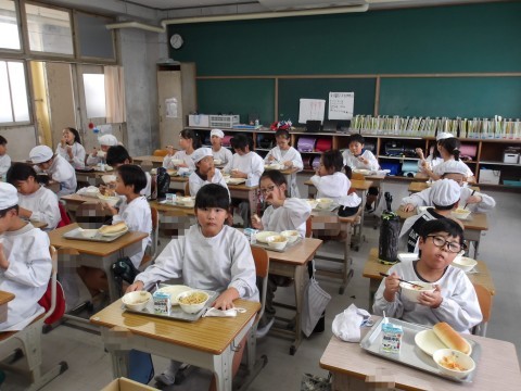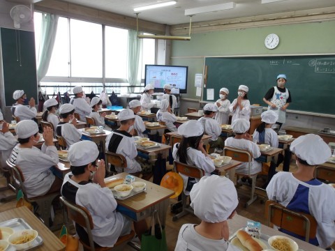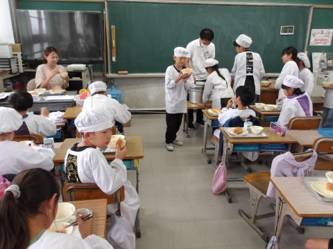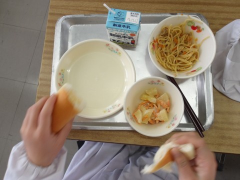 今日の献立「きのこのスパゲティ」のきのこは,シイタケ・しめじ・えのきなどが使われています。きのこはお腹の調子を整えてくれる食物繊維がたくさん含まれています。