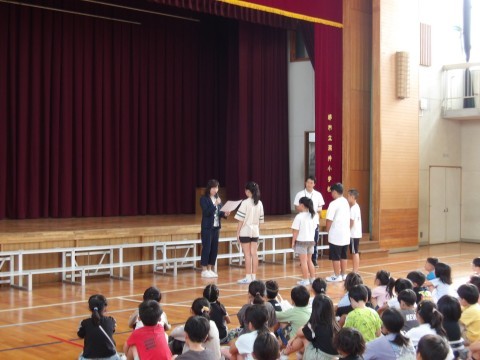 子ども会の活動や,理科展の表彰がありました。みなさんよく頑張りました。