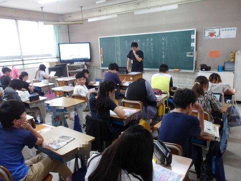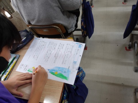 書写では,「枕草子」の硬筆の学習に取り組んでいます。文字の大きさや配列に気を付けて取り組みます。