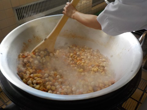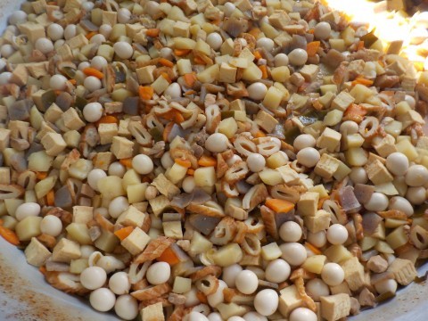 「こんぶ入りおでん」は,だし汁をとった昆布を切って,ほかの具と一緒に煮こんで作りました。食品を無駄なく美味しく食べることができる献立でした。