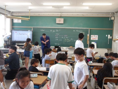 今日から新しいNS(ネイティブスピーカー)の先生を迎えて,子どもたちもニコニコいっぱいでした!!