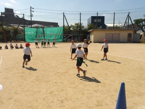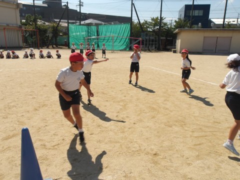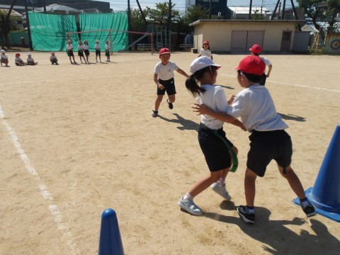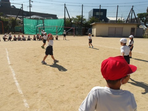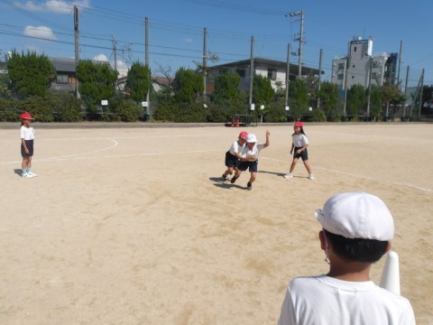 ゴールの近くの相手にタッチしたらいいねん!」と,なるほど…良い気づきをしている子がいました。