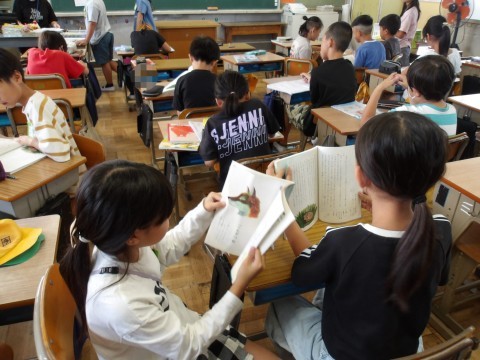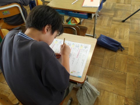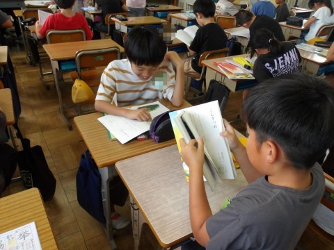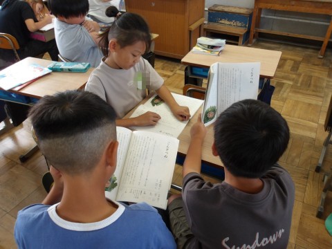 国語では,漢字の学習をした後,「ごんぎつね」に入ります。漢字ができた人から,友だちと音読をしています。