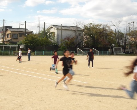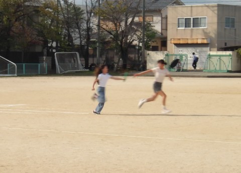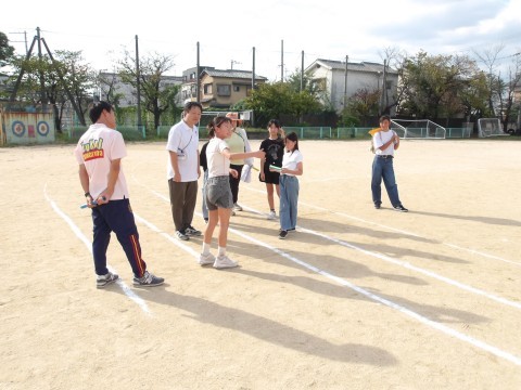 下校後,連合運動会のリレーに出場する糸たちが練習を行いました。