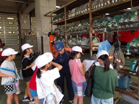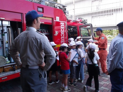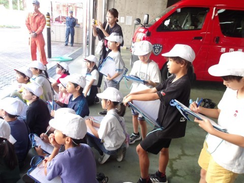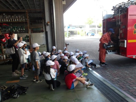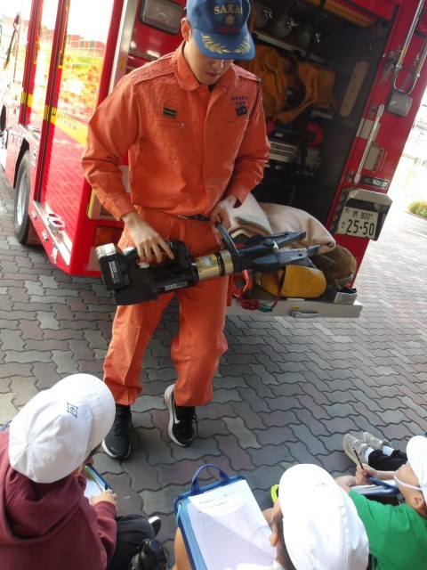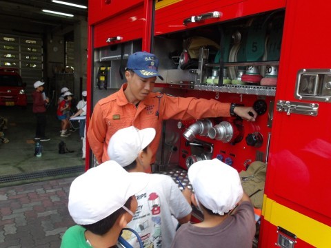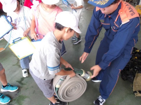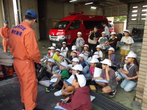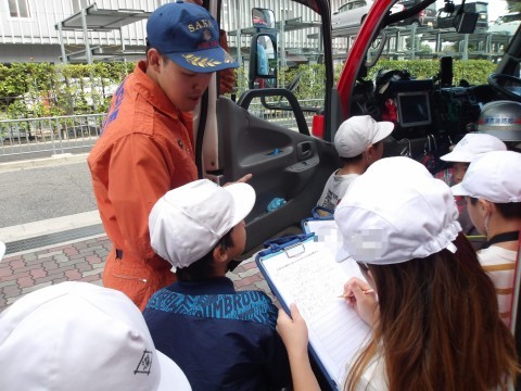 消防署では,救急車や消防車の説明や見学するだけではなく,実際に乗せていただいたり,心電図を取ってもらったりもしました。