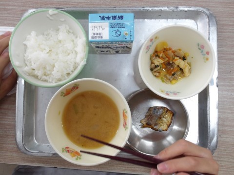 今日の給食の献立は,きのこやくり,さばも秋などの食材が使われています。