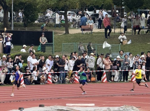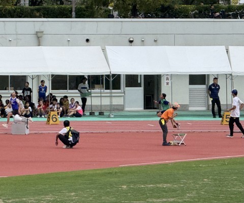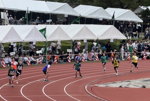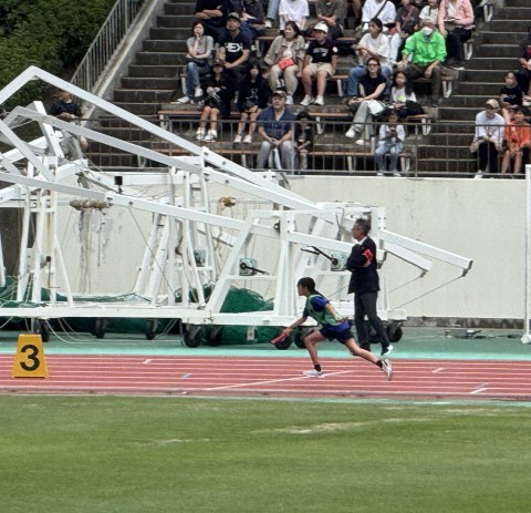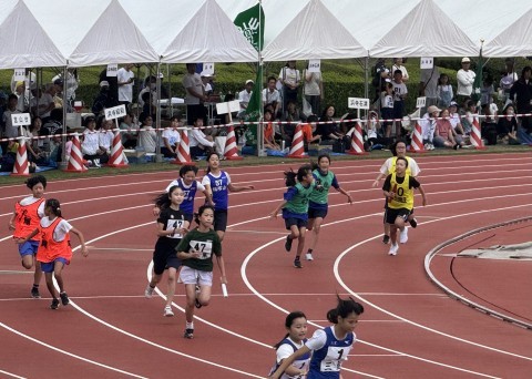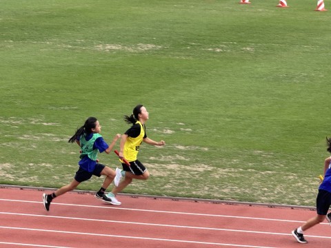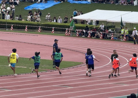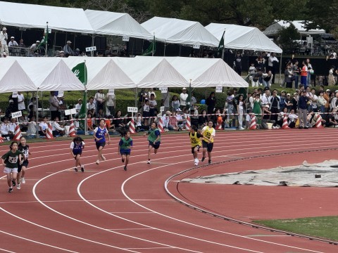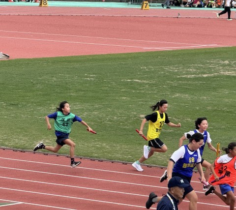 女子4×100mリレーです。1.2走に小学生が走りました。