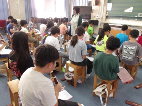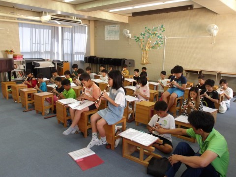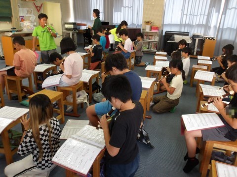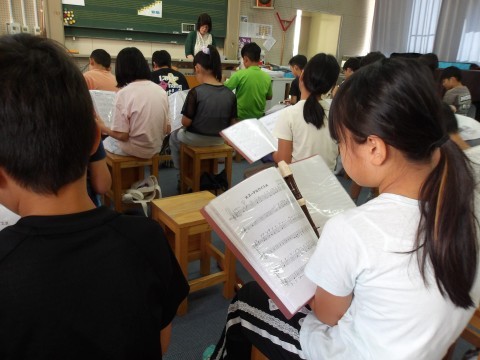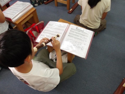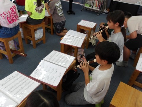 音楽では,「エーデルワイス」のリコーダーの練習をしています。2組は,2のパートを演奏します。音階で歌ってから,各自で自主練習をしています。