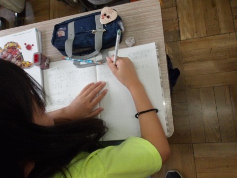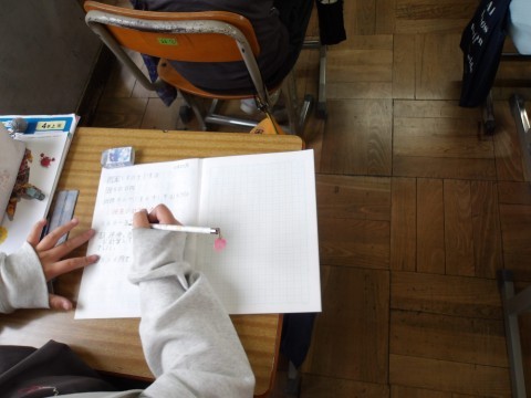 算数では,計算の約束を守って,1つの式に表す学習に取り組んでいます。計算の約束を守らないと,答えが違ってきますよ。問題文をよく読んで,どこを( )を使って表すのかを考え,式を作っています。