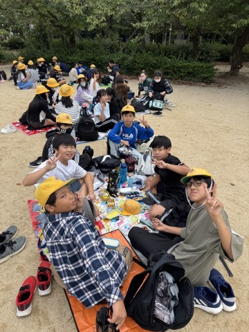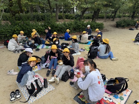 お弁当タイムです。13:25には靱公園を出発し帰校します。