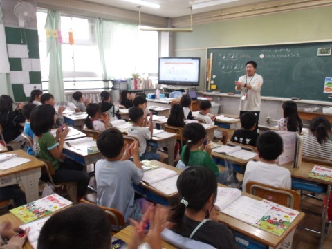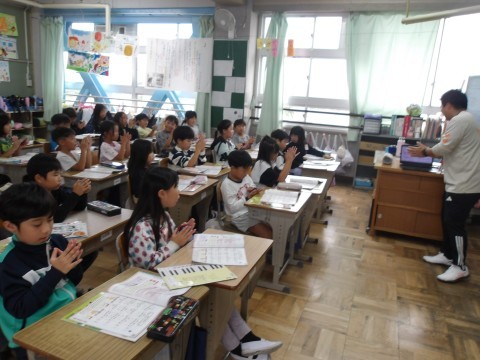 「タン・ウン・タン・ウン」や「ン・タ・タ・ン・タ・タ」など,いろいろなリズムを使ってやるカスタネットは,みんなとても楽しそうでした。