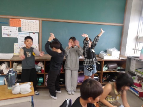 1年生がしっかりと聞けるように,大きな声ではっきりと…に加えて,身ぶり手ぶりを入れて楽しさもプラスした紹介にしています。
