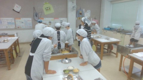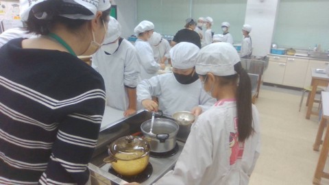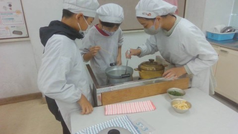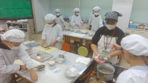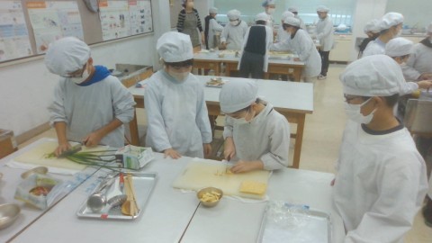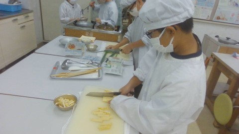 今日は,調理実習でした。ご飯とお味噌汁をつくりました。ご飯は,炊飯器で炊くのではなく,鍋で炊きます。また,お味噌汁にいれる具材を切り,準備万端です。