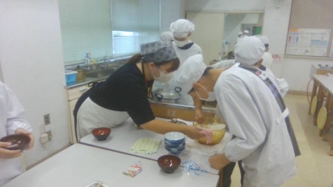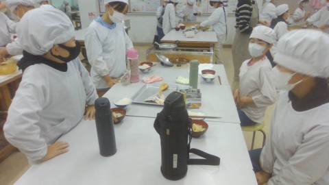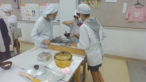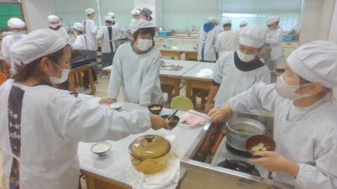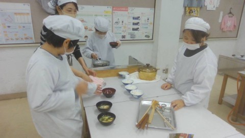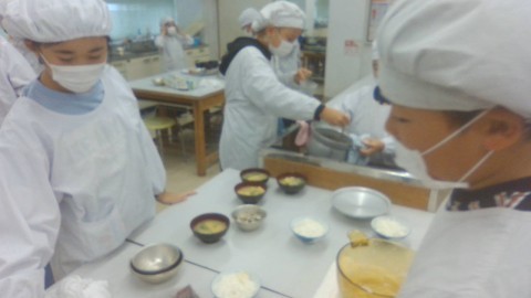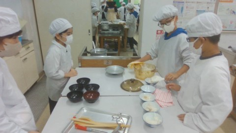 大根に火が通っているか確認をしたり,ご飯をよそったり,盛り付けを考えたり,いよいよ実食です!!