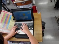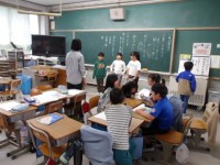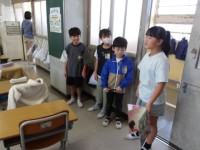 3年生が,担任の先生と1年生へのおすすめの1冊を伝えに行く打ち合わせをしています。