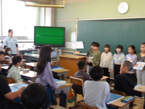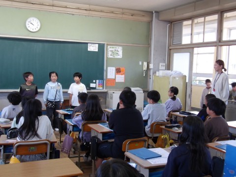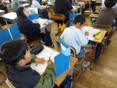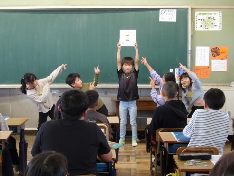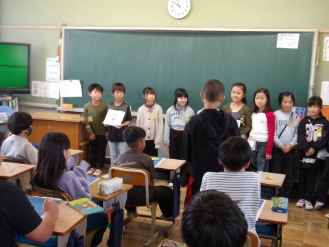 算数「がい数の表し方と使い方の単元テストが行われています。テストが終わってから,3年生が1年生に発表する「みんながえらぶ ベスト1」発表を4年生に聞いてもらおうと,訪問しました。4年生からも,「読みたくなったよ。と」ほめてもらいました。