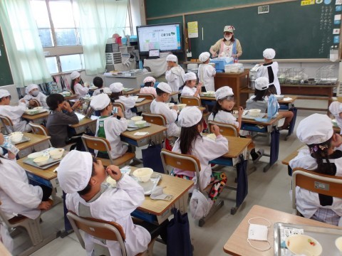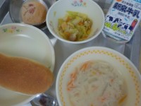今日の献立「小松菜サラダ」の小松菜は,鉄分を多く含む食品です。鉄分が足りないと,体が疲れやすくなったり,めまい・息切れなどの原因となります。しっかりといただきましょう。