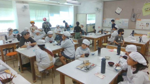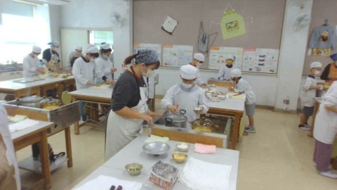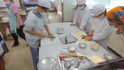5年1組は2・3時間目に調理実習がありました。朝早く登校してご飯を炊く準備をしたり,煮干しでお味噌汁のだしをとったりなど,自分たちで積極的に取り組んでいました。「美味しい?」と聞くと,「めっちゃ美味しい!」「お味噌汁5杯飲んだ!」と嬉しそうに話してくれました。自分で作るとより一層美味しいですよね!
