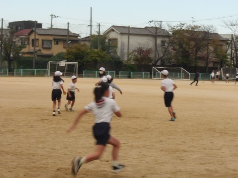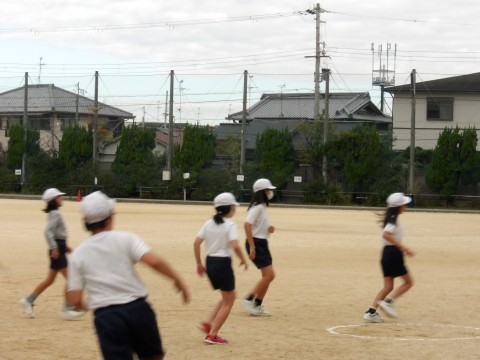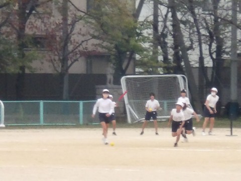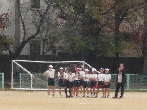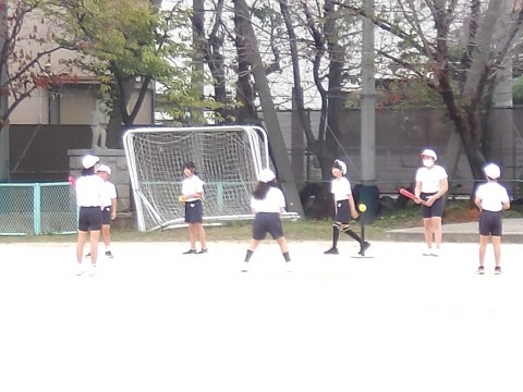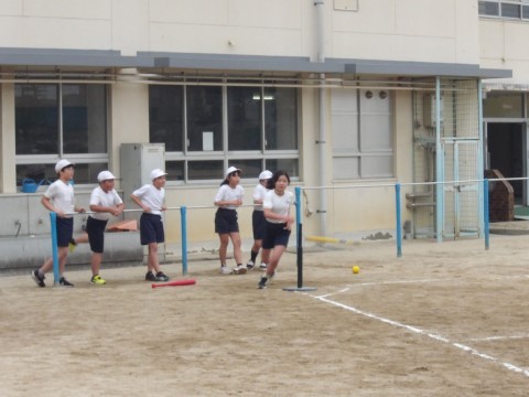 運動場の体育では,「Tバッティング」に取り組んでいます。クラスマッチも行われるようです。