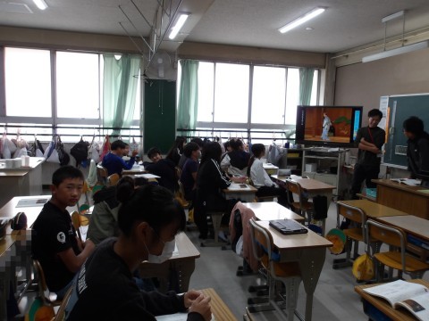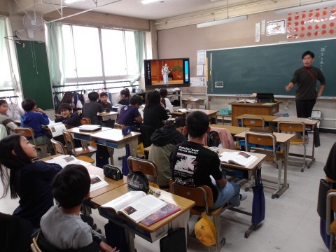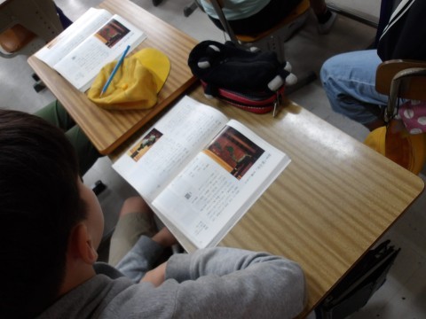 国語では,狂言「柿山伏」の学習をしています。役割を決めて音読し,狂言を楽しみます。