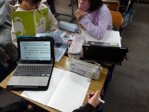 理科では,「火山活動」「地震」について調べ学習をしています。