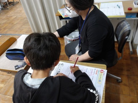 先生と一緒に学んでいます。質問すれば,すぐに先生が詳しく説明しながら一緒に解決していきます。個別に行うので,丁寧な学びで定着を図ります。