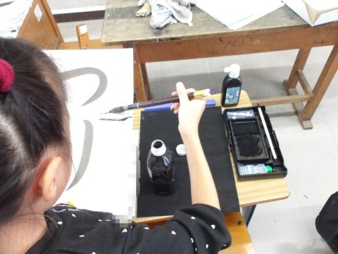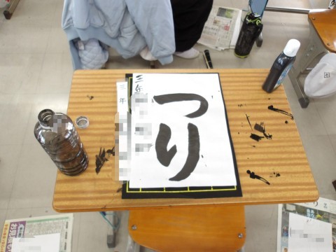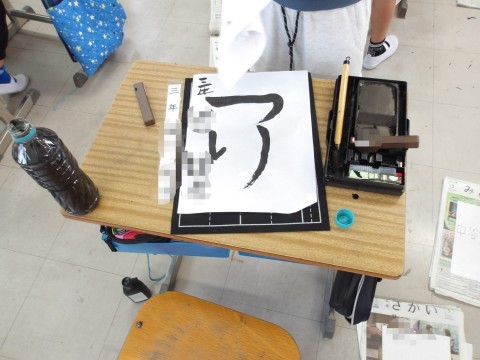 書写の学習です。まだまだ,手や机が汚れたり,清書の紙が汚れたりはしますが,筆にも慣れてきました。