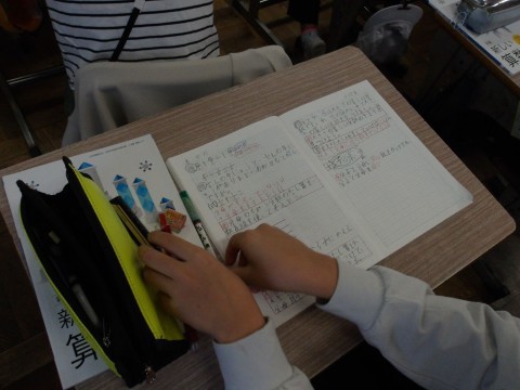 算数では,「大きさの等しい分数の決まり」について,学習をしています。