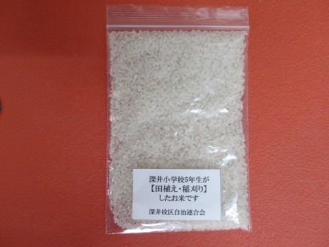 5年生が田植え・稲刈りをしたもので,一人ひとりが持って帰れるように,個包装までしてくださっています。